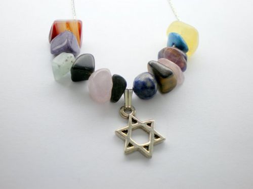 שרשרת כסף טהור עם שניים עשר אבני החושן. במרכז תליון מגן דוד מכסף טהור. לשמירה,מזל והצלחה בכל. אורך השרשרת 42 ס"מ .