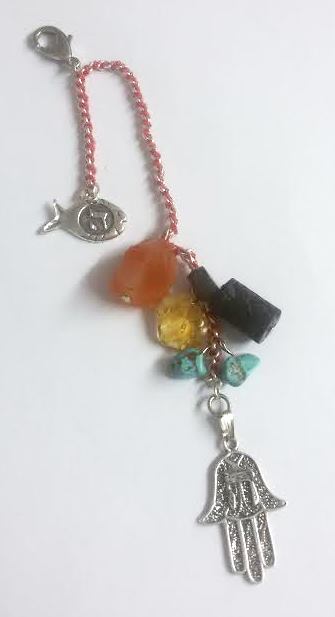 תליון מיוחד על שרשרת כסף טהור (925) וחוט אדום, בשילוב 2 קמעות מכסף טהור, קמע חמסה ש,ד,י, וקמע דג ה"א. 2 הקמעות בשילוב האבנים מאבני החושן להגנה ושמירה בדרכים נגד עין הרע ולבריאות. מומלץ מאד למתנה לנהג חדש וכן לרכב חדש.